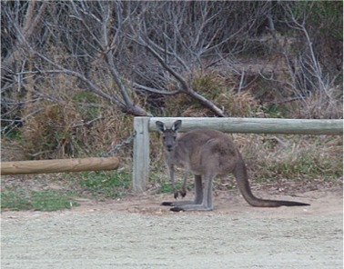 Der Himmel ist bedeckt, die Sonne blinzelt jedoch ein wenig hervor. Schulkinder gehen durch den Ort, Zeit, dass wir auf die Straße kommen. Tanken und Wasser auffüllen. Wir wählen die Küstenstraße B 101, sheep und cattle auf sandigen Flächen. Gegen 9 pm sehen wir zum erstenmal den Ortsnamen Adelaide auf einem Schild, 394 km. Doch heute wollen wir noch nicht dahin, sondern in die Nähe von Cape Jervis, morgen um 12 pm die Fähre nach Kangaroo Island nehmen. In Beachpoint werfen wir einen schnellen Blick auf den Southern Ocean und fahren weiter nach Robe, wo wir uns bei einem kleinen Stadtrundgang alte Häuser und das China Monument ansehen. Auf der weiteren Fahrt Farmland wie gehabt, jedoch auch einige Weinfelder mit saftig grünen Pflanzen. In Kingston S.E machen wir einen Stop beim Leuchtturm und schauen den Anglern auf einem weit ins Meer gebauten Steg zu und betrachten gefangene Tintenfische, die an Restaurants verkauft werden, wie wir erfahren. Vor Verlassen des Ortes fotografieren wir noch schnell die riesige Lobsterskulptur. Nach Kingston S.E. kommen wir auf den Princes Highway B1, Coorong Nationalpark, so gut wie kein Verkehr. Salt Creek scheint aus Tankstelle, allerdings mit Dinnerroom, und Toilette zu bestehen. Das Meer liegt hinter Dünen, davor und auf der anderen Seite Salzseen so weit das Auge reicht, zum Teil ausgetrocknet und schneeweiß. Kilometerfressertag, jedoch ohne Hektik. Möwentheater um meinen Pie Rest in Meningie am Lake Albert. Immer noch ausgetrocknete Salzseen rechts und links, Luftspiegelung auf der Straße, sehr weit entfernt, Adelaide 106 km, kleine Farm, ein angepflocktes Schaf, ein Pferd, ein blaues Auto, Fähre bei Wellington, schneeweiße Salzseen, ausgetrocknete Flächen, sonst nix, dann große bewässerte Farm rechts, viel cattle, ab und zu verwahrloste Farmen, großes Weinfeld links, Farm, Schafe, schöne Farm, Weinfeld rechts, Weinfelder überall, Longhorn Creek, Weinort mit schönen neuen Gebäuden, Riesenweinfelder, Bewässerungsanlagen, grüne Flächen. Trinkpause nach Strathalbyn. B 37, Eukalyptusbäume, Schafe, graue und grüne Flächen, Schafe, Schafe, Weinfeld links, nicht gar so üppig grün, Potatoes zu kaufen, Eukalyptusallee, kleines Maisfeld, vorbei an Goolwa, links der Southern Ocean, rechts ein Baumgerippe. 5:45pm Victor Harbour, Fischfilet, Calamari, Salat und Nudeln, takeaway bei Fish and Chips, dann langsam an einen Schlafplatz denken. Im Newland Head Conservation Park finden wir einen Platz mit Stegwalk durch die Dünen zum Waitpinga Beach. Nach der Rückkehr vom Strandspaziergang und Beginn der Abenddämmerung haben wir wieder nette Gäste neben unserem Camper, zwei Känguruhs, die zum Herzerweichen lieb zu uns herüberschauen.