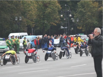 | 8:35 Uhr starten die Rollstuhlfahrer, 9:45 Uhr die Handbiker und um 9:00 Uhr gehen die Läufer auf die Strecke. |