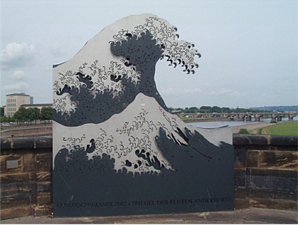 Metallskulptur zur Erinnerung an das Elbehochwasser 2002 |